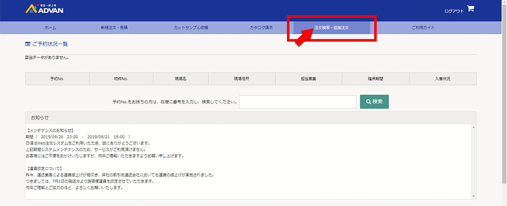 2.「注文検索・追加注文」をクリックしてください。