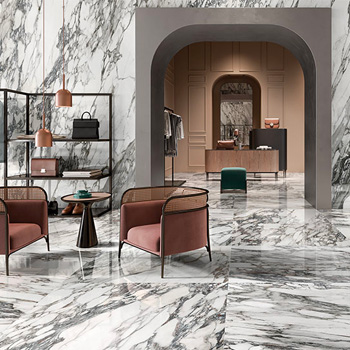 天然石を超えた迫力あるダイナミックな柄、圧倒されるほどの存在感が際立つ。大判タイルの最高傑作。
