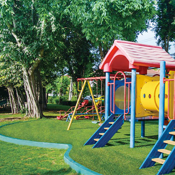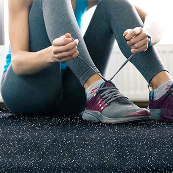 古タイヤ由来のリサイクルゴムを85%使用したエコなゴム製床材。衝撃吸収性と防滑性に優れた安全素材で、防音性にも優れています。