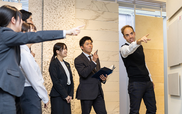 私たちプロジェクトチームが、打ち合わせから工程管理、施工図作成、 施工管理などプロジェクトに関わるすべてを責任もって管理しています。総合建材を扱うからこそ様々なプロジェクトに対応できます。