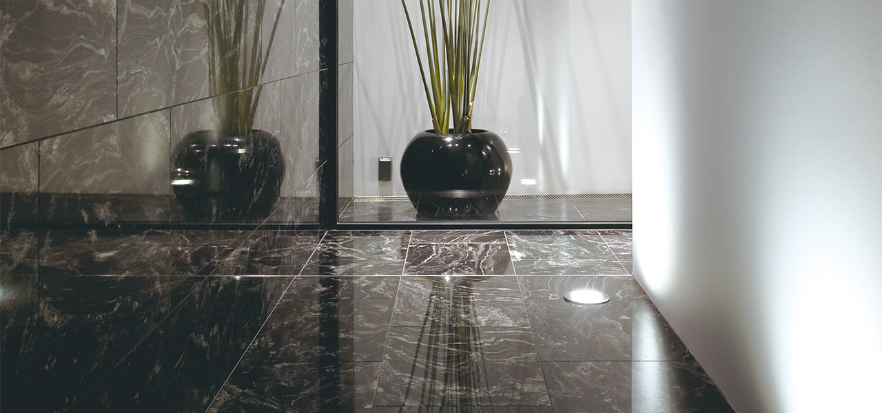 みかげ石は仕上げによって同じ石でも全然違うテクスチャーが表現できるのが魅力です。 吸水率も低く耐久性があるので、日本でも長年愛用されている石のひとつです。 石種によってダイナミックな柄模様が入ったりシックな表情を楽しめるのが魅力です。 600角の大きさが規格サイズで選ばれ、人気を集めています。