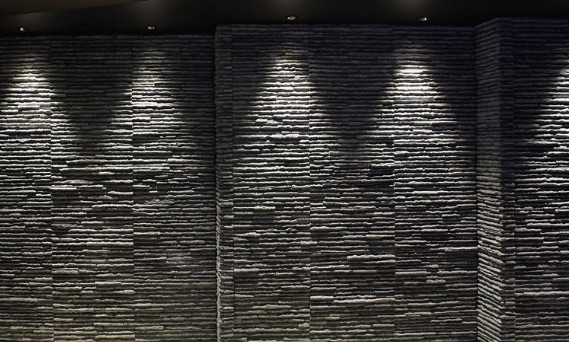 壁面を上から照らす事で映し出されるランダムな陰影、天然石に含まれる鉱物などがキラキラと輝く様子は多くの人を魅了してきました。新築や店舗、ホテルなどの壁面など重厚感を演出したい空間におすすめです。