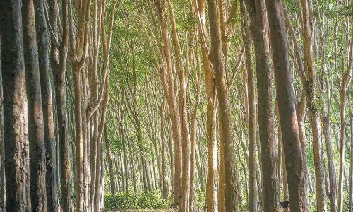 表面材のフレンチオークは樹齢200年以上のものを伐採したもので、芯材のヘベアは計画的に栽培されたものを使用。