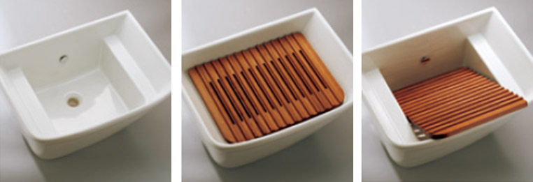 別売の専用洗濯板は、横方向にセットすればMegを浅く使え、縦方向では斜めにセットして、洗濯しやすいポジションになります。生活をスタイリッシュにするデザインで選ばれています。