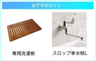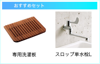 使いやすいサイズはもちろん、洗剤や石鹸、たわしなど掃除用具が上に置けるスペースがあるのが魅力。お好みの水栓を取り付けることができるので見た目にもこだわれます。