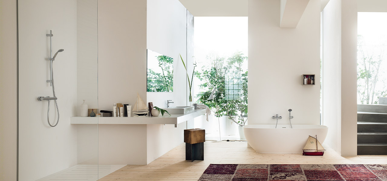 シンプルで使いやすく、どんな浴室にもフィット。心地よい水流で日々のシャワータイムをより豊かにします。 パイプ式の他にもスタンド型、オーバーシャワーヘッドなど品揃えも豊富で、自分好みの空間にすることができます。