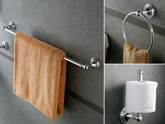 タオルバーやフック、ミラーなど、デザイン性の高いアクセサリーで洗面空間より一層上品なものにしてくれます。