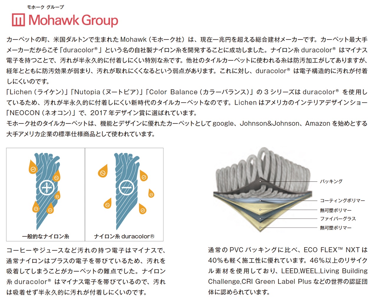 ライケン、ヌートピア、カラーバランスシリーズはMohawk社が開発した特別なナイロン糸を使用しています。