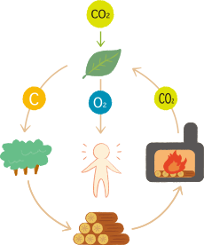 環境を考える上で、薪ストーブは地球環境にやさしい暖房器具と言えます。木を燃やして排出されるCO2の量は、木が育つ過程で吸収されるCO2よりも 少ないため、植林をし、その木を燃焼させることにより、CO2削減も有効な方法となります。高性能ストーブで木を燃やすことで、他の暖房等を使わない分 CO2の削減、更に地球環境保護にも役立つのです。