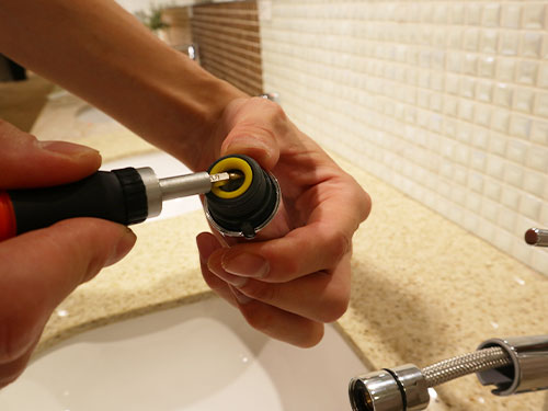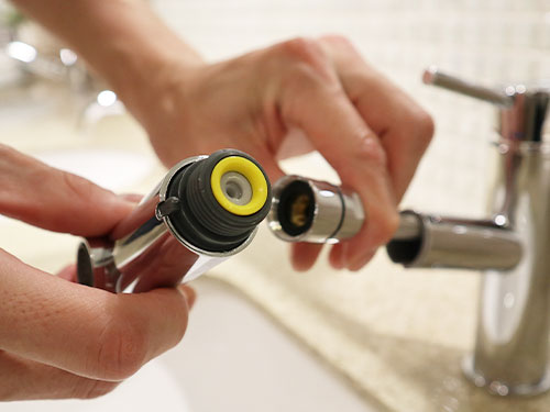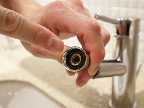 付いている場合、節水弁を取り除くことで水圧を強くすることができます。