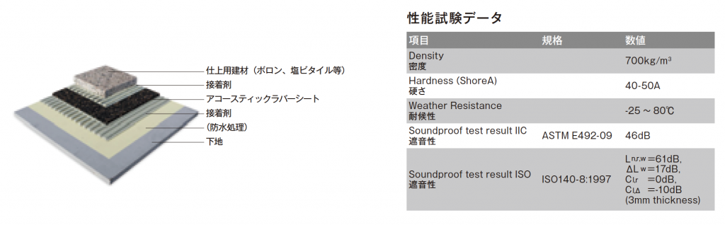 ボロンに遮音性能はありません。遮音性を高めるために、アコースティックラバーシートを下地に使用する事をおすすめします。