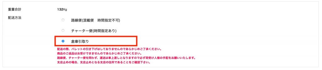 ※在庫のある倉庫によって引き取りができない場合がございますのでご了承ください。