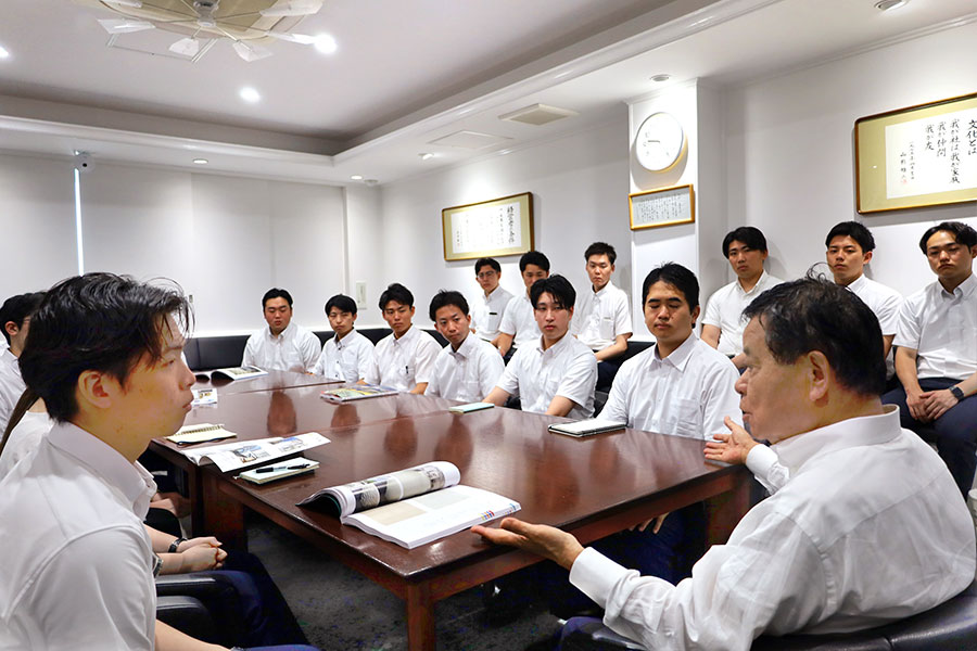 雅遊塾(勉強会)では創業者など講師から、商人としての心得や経営のノウハウを学びます。経営に必要な「ヒト、モノ、カネ」に関する業務の勉強だけでなく、人生に役立つ生きるすべについて学び、社会人としての成長を目指します。
